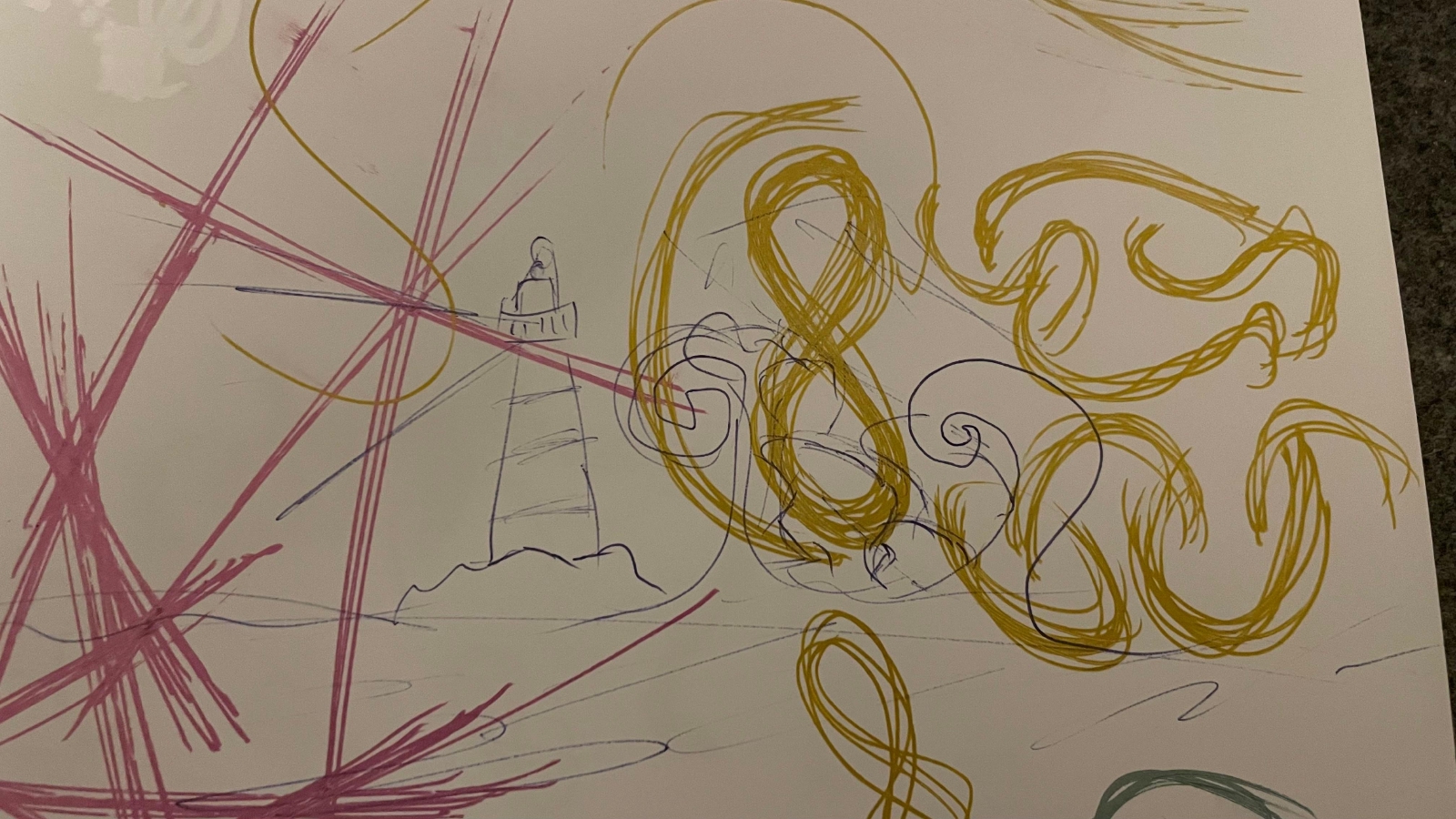 This lighthouse project started with a question my kid asked me if I could draw a lighthouse with some heavy waves in the ocean.